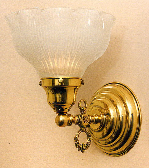 Another terrific single Colonial wall sconce with an added hint of Art Deco. Pie crust prismatic shade, double sided gas key and mirror finish bring this one to life! Shiny metal's not your thing? Try it in a darker, aged antique brass or oil rubbed bronze or even copper?