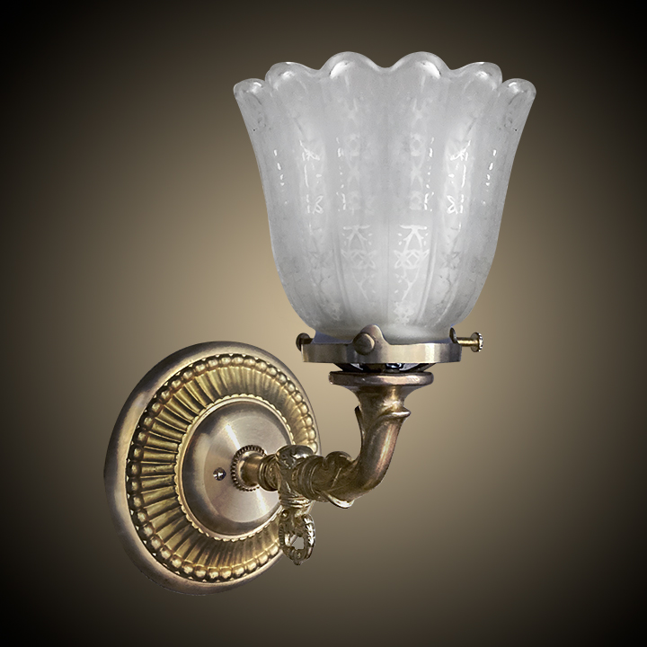 Shown in Medium Antique Brass. Available in different Metal Finishes, different Glass, Back Plate, multiple arms and many other Custom Options.